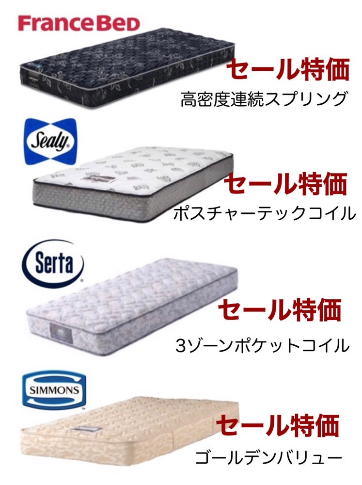 | 取扱ブランド | シモンズ サータ シーリー 日本ベッド 東京ベッド フランスベッド ドリームベッド カリモクベッド |