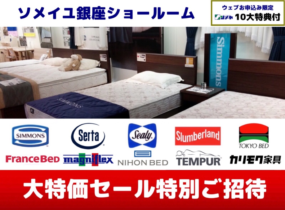 | 取扱ブランド | シモンズ サータ シーリー 日本ベッド 東京ベッド フランスベッド テンピュール マニフレックス ドリームベッド カリモクベッド スランバーランド |