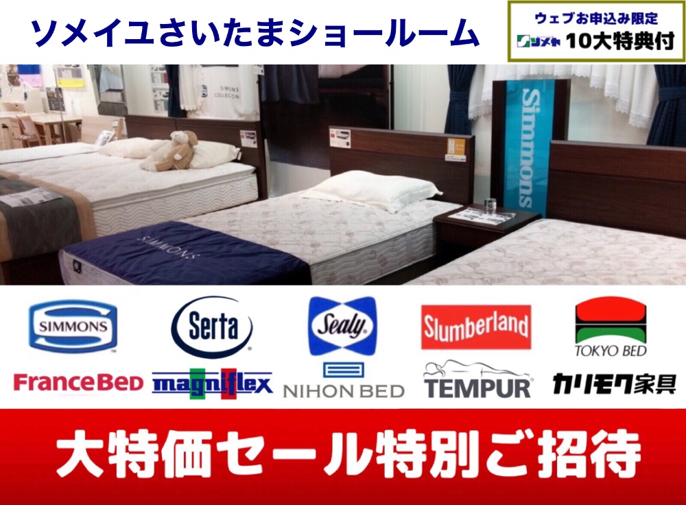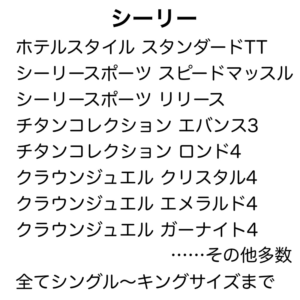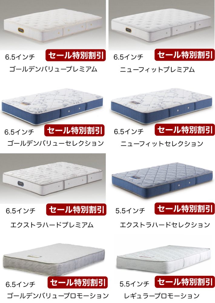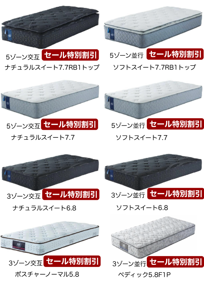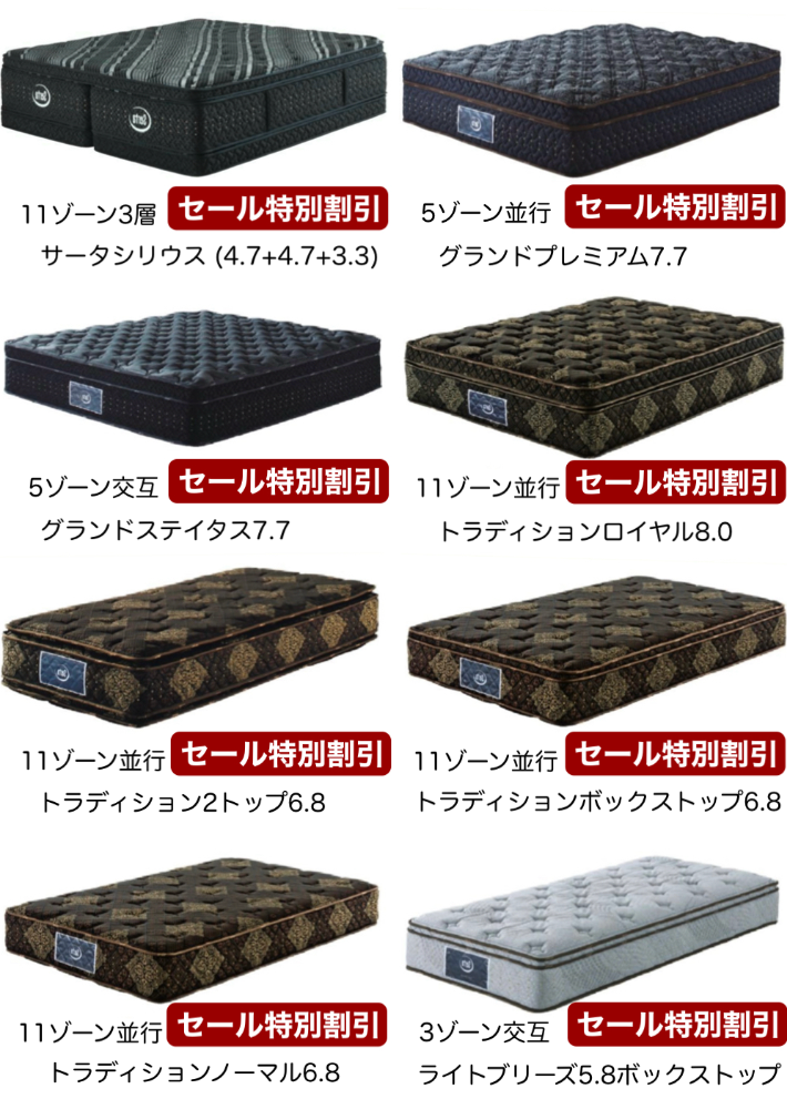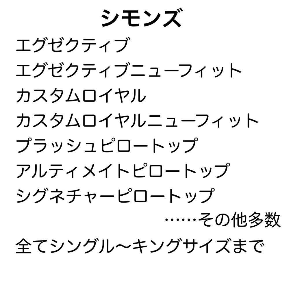 | 取扱ブランド | シモンズ サータ シーリー 日本ベッド 東京ベッド フランスベッド テンピュール マニフレックス ドリームベッド カリモクベッド スランバーランド |